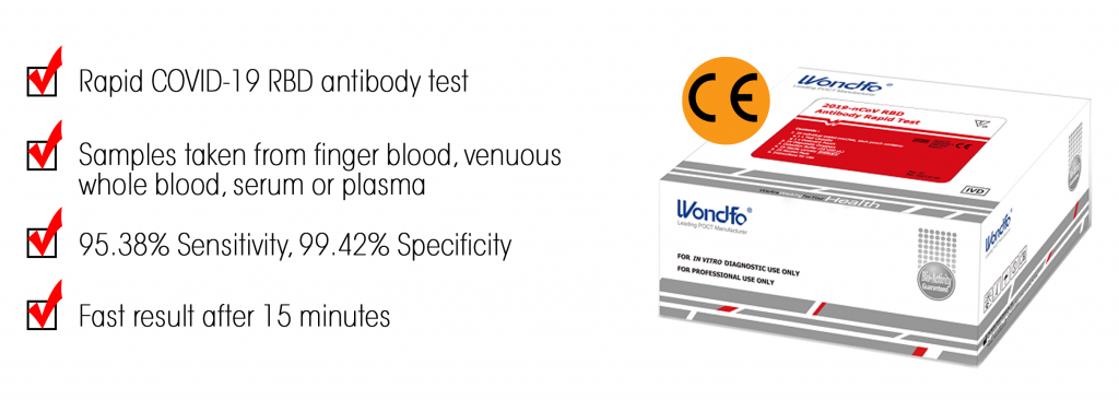 The 2019-nCoV RBD antibodies are protective antibody produced by the human body after inoculation with 2019-nCoV vaccine or infection with 2019-nCoV. The test is intended as an aid to assess the adaptive humoral immune response to the 2019-nCoV. 2019-nCoV RBD Antibody Rapid Test is based on the principle of double antigen sandwich immunoassay for determination of 2019-nCoV RBD antibodies in human whole blood, serum and plasma specimen.
